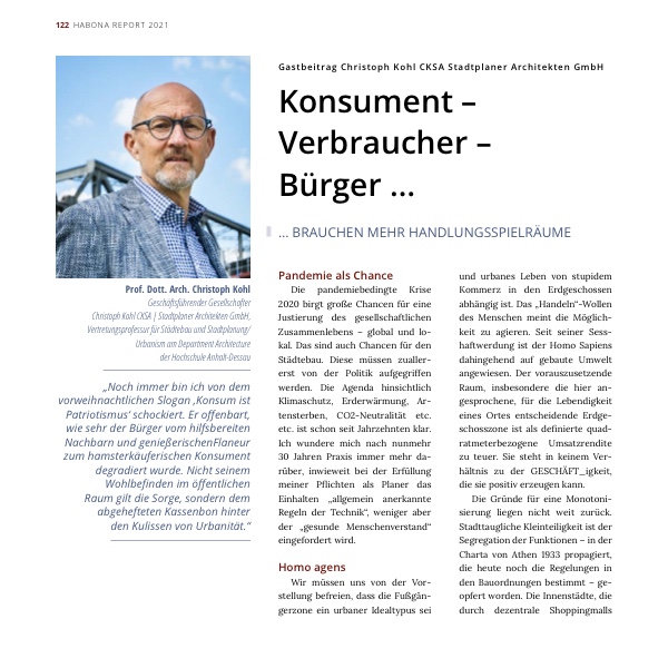 Auch CKSA arbeiten entlang ihrer Stadtquartiere mit am Erfolgsrezept krisenresistenter Immobilien. Den Slogan „Nah und bequem“ teilen wir mit HABONA. Lesen Sie den HABONA REPORT 2021, und dort auf den S. 122/123 den Gastbeitrag von Christoph Kohl.