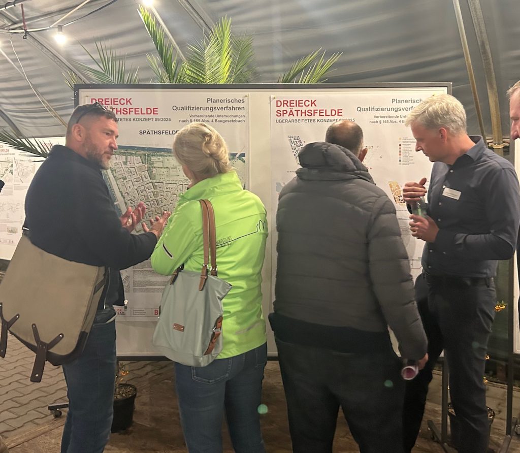 Die Fläche „Dreieck Späthsfelde“ weckt vielfältige Entwicklungswünsche für Wohnen, Gewerbe und Erschließung bei gleichzeitiger Stärkung von Natur, Baumschule und Kleingärten. Gerade die Vielfalt der Nutzungen macht das Gebiet attraktiv. Um den einzelnen Ansprüchen wirklich gerecht zu werden, braucht es jedoch klare Entwurfsentscheidungen. Besondere Priorität hat für uns das Thema Wohnen – nachhaltig und in grüner Umgebung.