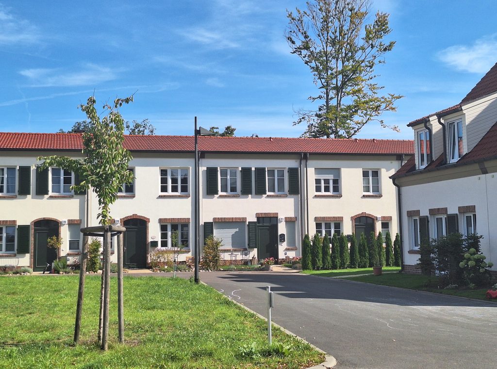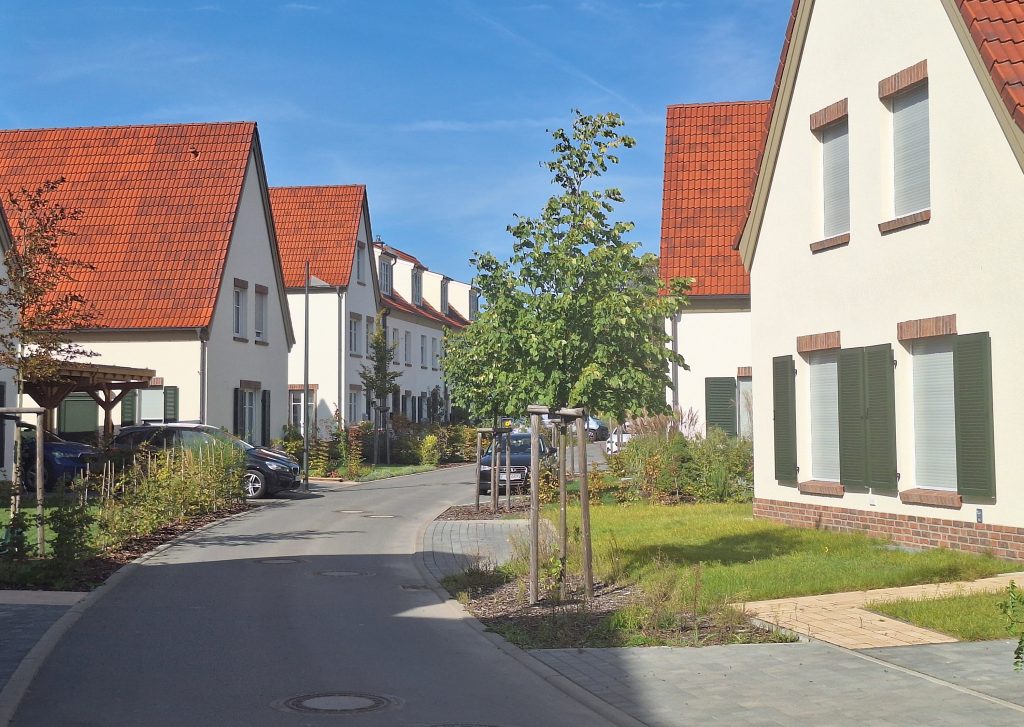 Jenseits der Straße von der geplanten Siedlung, im Umland des Frauensanatoriums, sind schon die erste „Musterhäuser“ von CKSA in 2018 fertiggestellt worden. Ein Einfamilienhaus, zwei Doppel-, sechs Reihenhäuser, sogenannte Mews, wurden als anschaulicher Vorgeschmack auf die geplante Bauoffensive errichtet.