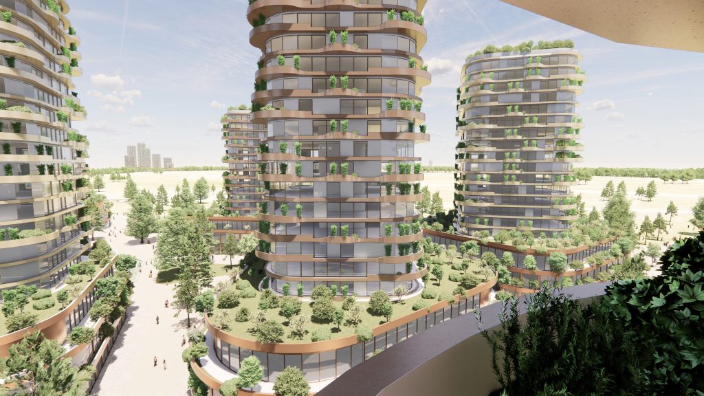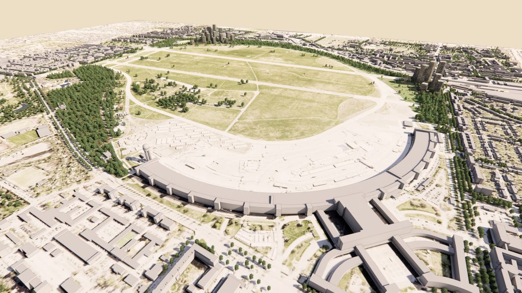 Das Feld ist einzigartig und von internationaler Bedeutung. Hochhauscluster passen zum Maßstab des Feldes und haben eine Ausstrahlung, die den Ort gerecht wird und diesen bereichern. Besonders der heute etwas ungenutzte südlichen Rand des Feldes wird hiermit qualitativ aufgewertet. Die Cluster fügen sich am südlichen Rand des Feldes in das Landschaftskonzept des „Grünen Bogens“ ein.